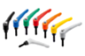 Clamping levers with external thread and protective cap, matt textured