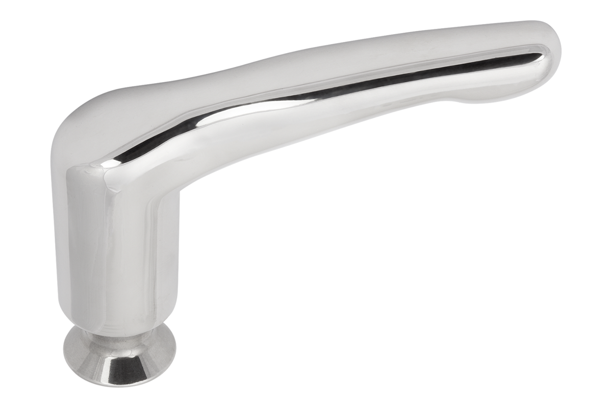 Clamping lever designed for the hygienic sector. The completely closed grip part and the shaft seal prevent contamination of the lever internal workings. Additionally, the screw insert has a conical collar so that the fastening point can be hygienically sealed with the Hygienic USIT® sealing and shim washer.