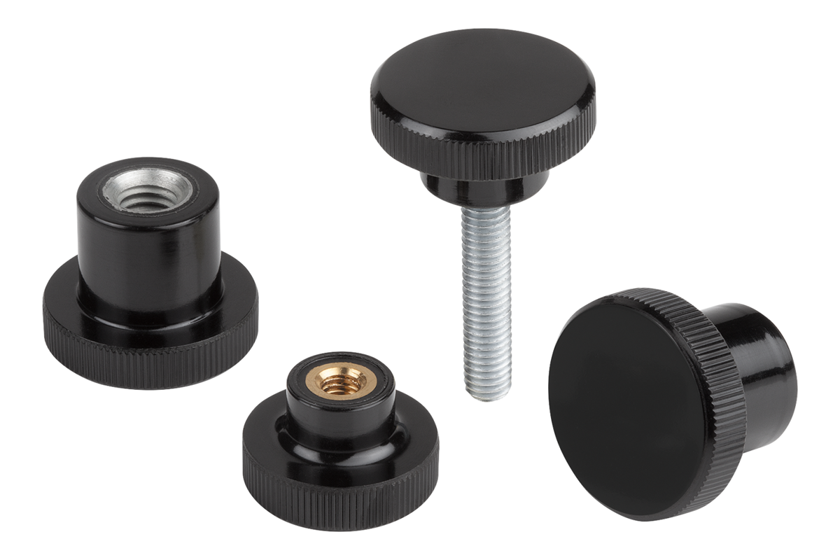 Knurled knobs, Form E, with tapped bush