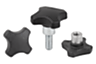 Palm grips, plastic with protruding steel bush, Form K with tapped bush