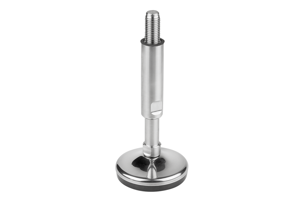 De justerbara fötterna har en justerhylsa som täcker delar av gängan. Inuti gängan finns en O-ring som hindrar smuts från att tränga in.