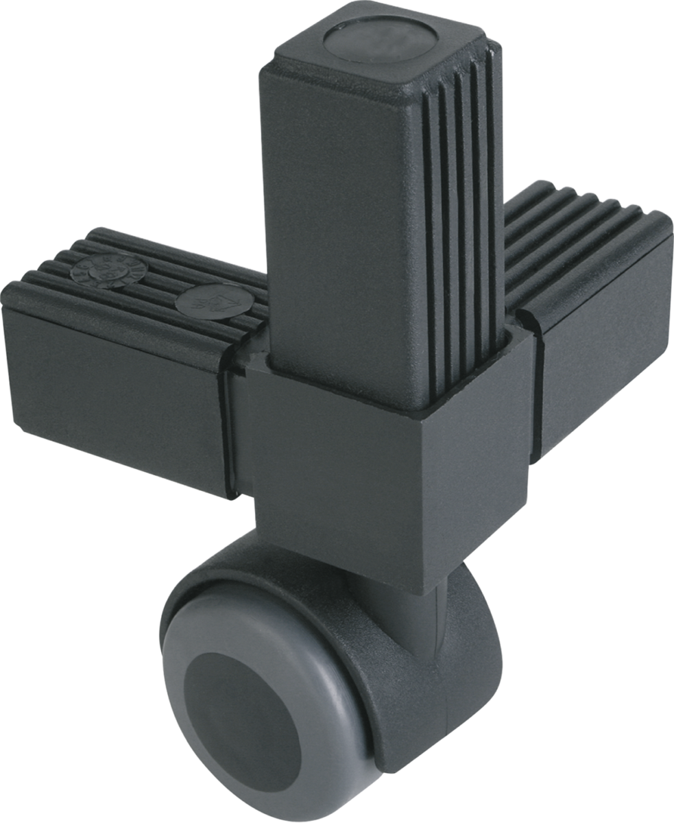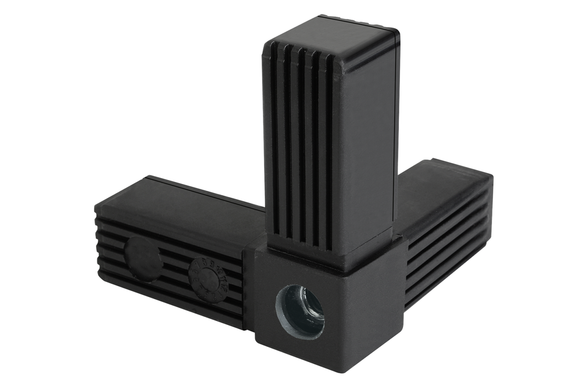 Förbindningssystem utan skruvar. Man sticker bara i insticksförbindningarna i fyrkantsrören. Kan demonteras och användas igen. För montering av ledade fötter, hjul osv.
