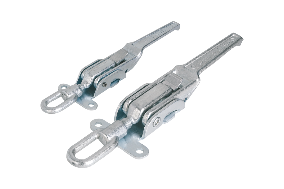 Kraftiga, smidda spännlås för hög dragbelastning, som främst används för lastbilar och jordbruksmaskiner samt anläggningsmaskiner. När låset är stängt säkras det mot oavsiktligt öppnande av en spärr.