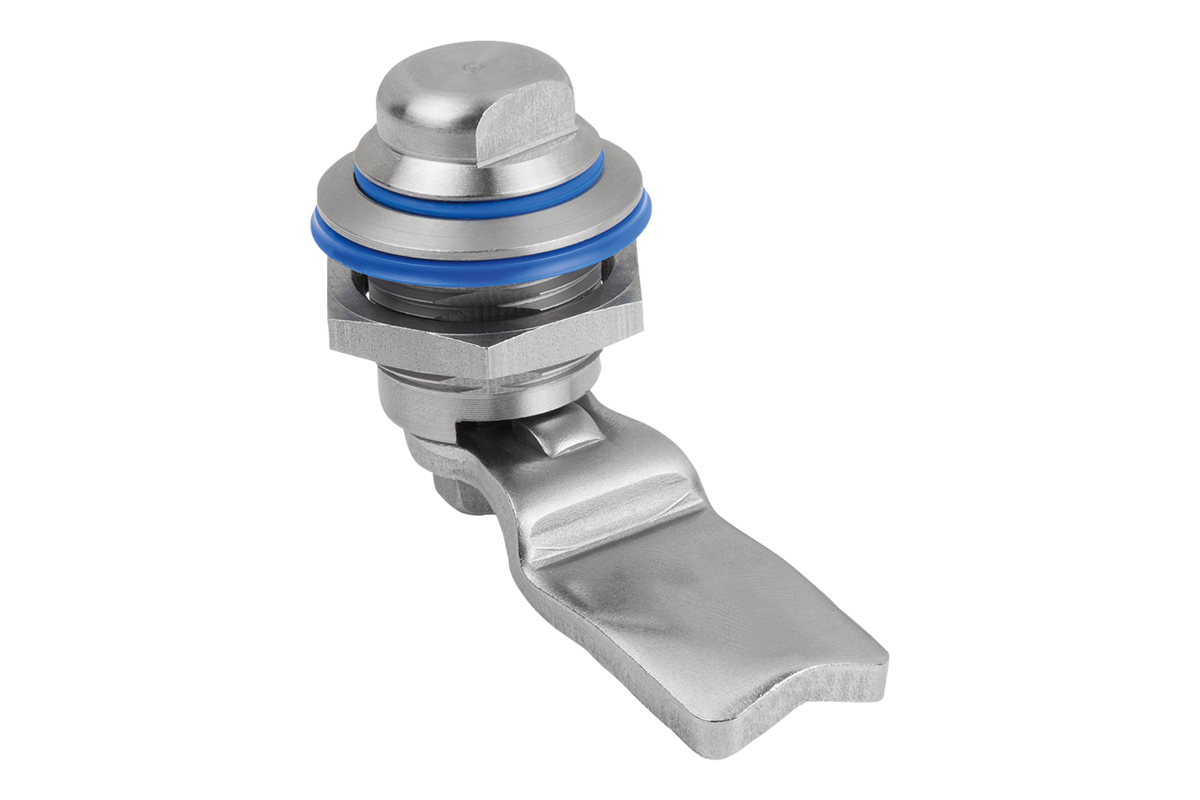 Vridreglar i rostfritt stål med manövrering för nyckelvidd 13 mm för applikationer med hygienkrav enligt DIN EN ISO 14159, DIN EN 1672-2:2009*, vatten- och dammskyddade enligt IP69K. Tack vare sin design med runda former och polerad yta, i kombination med materialet som används, är de mycket smutståliga och lätta att rengöra. Tätningen mellan vridregeln och luckan är en fast PUR-skumtätning på undersidan av vridregelns hus.